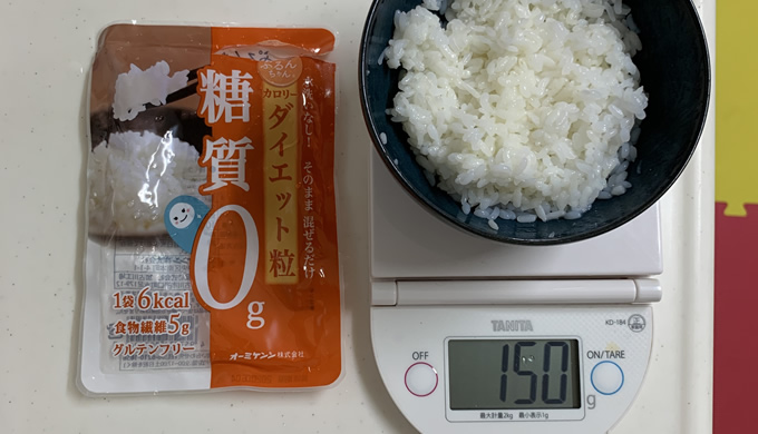 まあでもそれは、あたり前で、ぷるんちゃんを混ぜると必然的に白米の量が減ります。