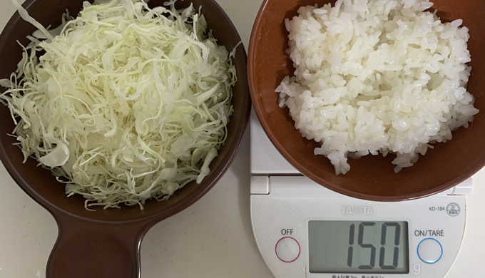今日は、白米150gを食べてからキャベツを食べたグラフ。